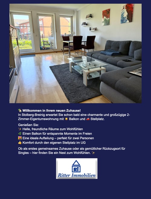 V E R K A U F T ! In Stolberg-Breinig: Neuwertige 2 Zimmer-ETW mit Balkon und eigenen Tiefgaragenstellplatz ... 👍👍👍