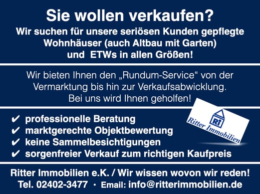 V E R K A U F T ! In Stolberg Randlage bieten wir Ihnen eine 4-Zim.-ETW mit 2 Dachterrassen zum Kauf an. Mehr Infos in Kürze unter Immobilien/Angebote.